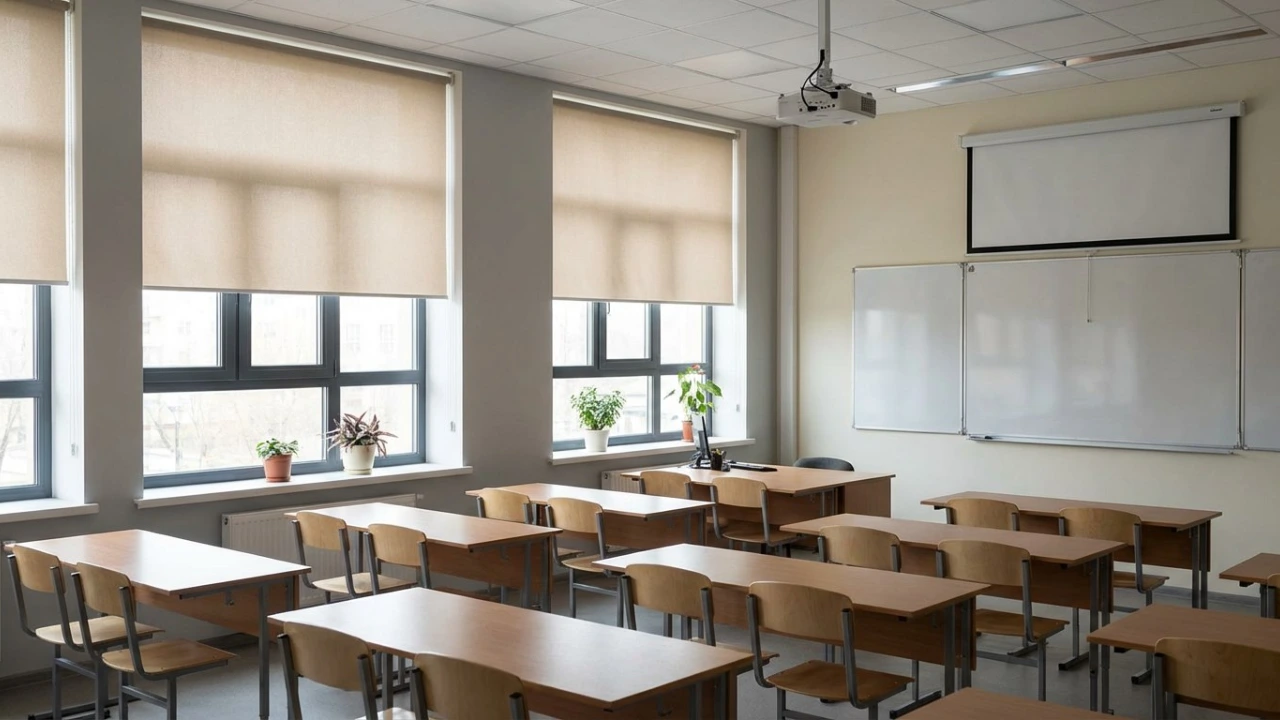 - مهمترین فضا، کلاسهای درس هستند؛ جایی که کنترل نور برای افزایش تمرکز دانشآموزان و جلوگیری از تابش مستقیم روی تخته و صفحه نمایش اهمیت زیادی دارد.