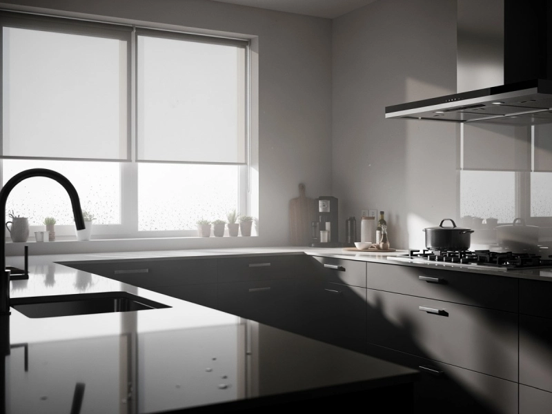 استفاده از این محصول در آشپزخانه بسیار مناسب است. این پردهها به دلیل توانایی کامل در مسدود کردن نور و سهولت در تمیزکاری، میتوانند با رطوبت نسبی محیط کنار بیایند و به حفظ ظاهر زیبا و طول عمر پرده کمک کنند.